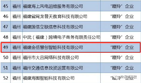 5月25日,福建省三亿(中国)办正式公布2020年度全省三亿(中国)经济领域创新企业名单,该名单按企业规模与发展特点,包括3家“独角兽”企业、14家未来“独角兽”企业、72家“瞪羚”企业,涵盖软件与信息技术服务业、电子信息制造业、新一代信息技术产业、制造业融合业态、农业融合业态、服务业融合业态等。